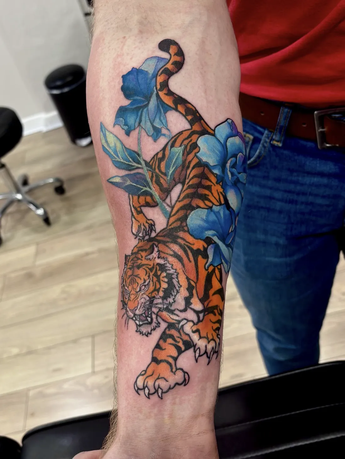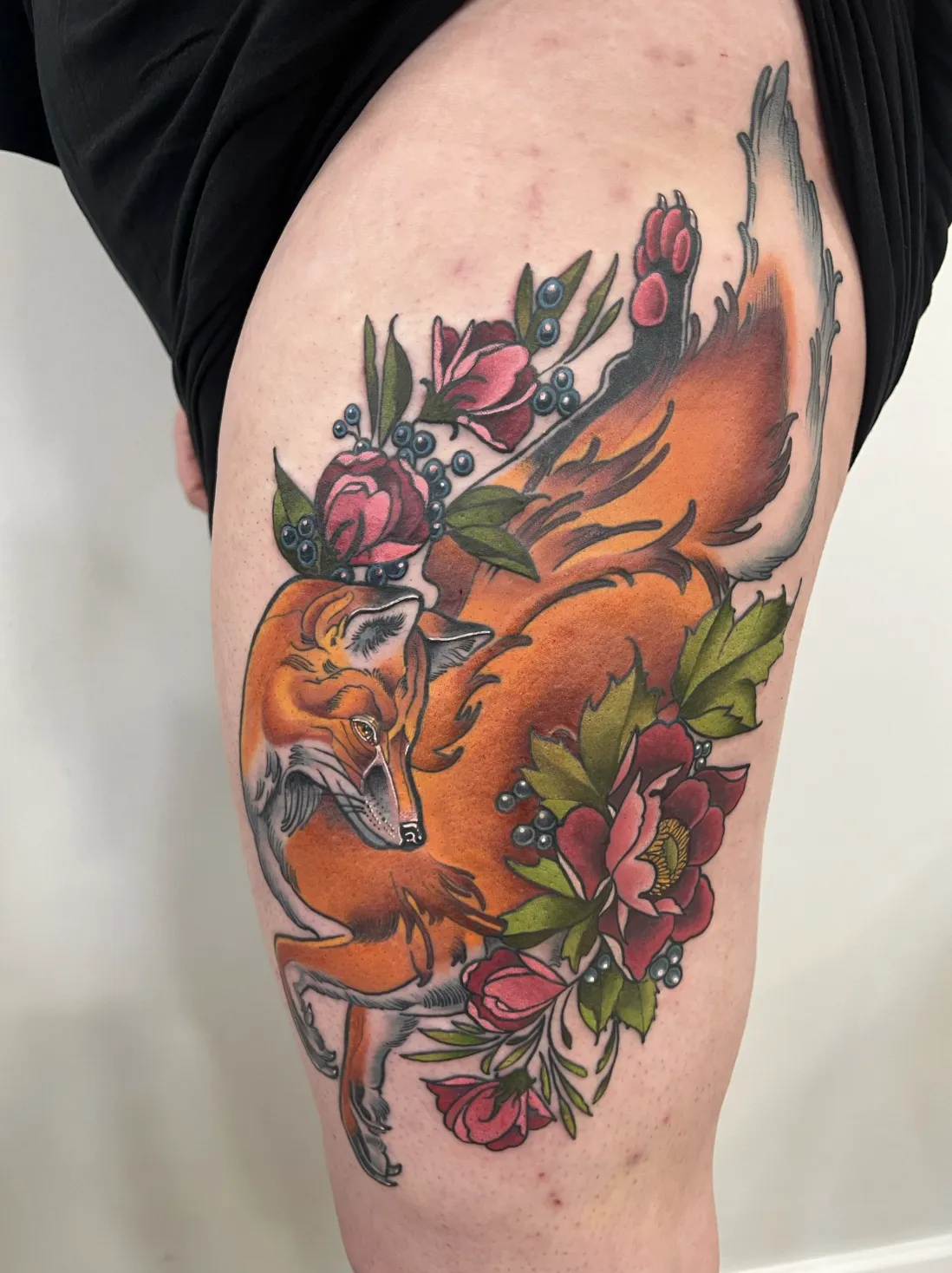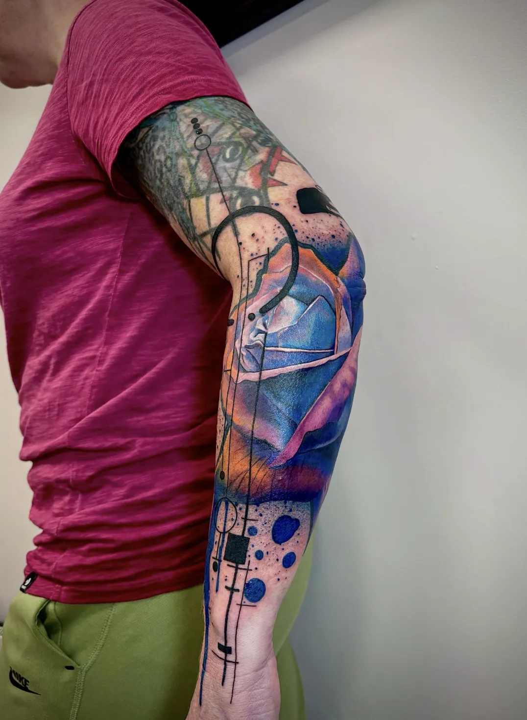 Kayley’s work primarily consists of vibrant colour realism, captivating watercolour, and intriguing abstract elements. She truly enjoys experimenting with a variety of textures and unique abstract ideas that beautifully compliment each client and their individual tattoo placement, ensuring that each piece looks both natural and organic.
